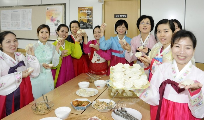 [시민일보]서울 광진구는 설을 앞두고 28일 서울다문화가정협의회에서 ‘2014 다문화가족과 함께하는 설 전통음식 만들기’ 행사를 개최했다. 사진은 행사에 참여한 다문화여성들이 직접 빚은 만두를 들어보이는 모습.
