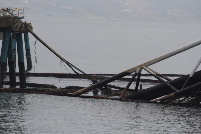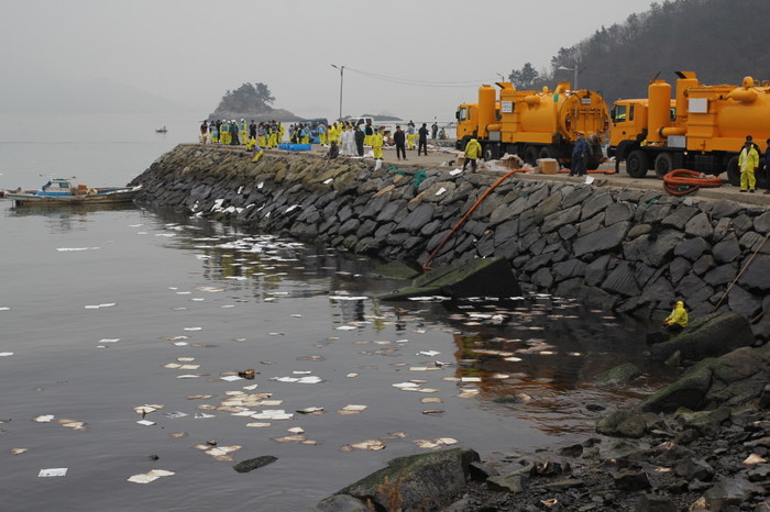지난 1월31일 여수시 낙포각 원유2부두에 유조선 W호의 송유관 사고로 16만4169톤의 기름이 유출됐다. 다음날인 2월1일 부두앞바다에서는 흡착포를 뿌리는 등의 방제작업이 실시됐다.