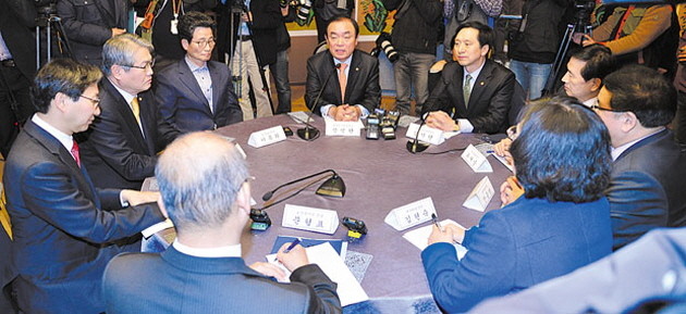 6일 오후 서울 여의도 국회 사랑재에서 기초연금 도입 방안을 논의하기 위해 열린 여·야·정 협의체 회의에서 참석자들이 논의를 하고 있다.
