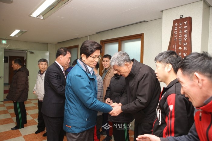 [시민일보]지난 5일 김성기 가평군수, 김문수 경기도지사가 가평꽃동네를 방문, 시설 관계자들을 격려하고 지역내 주요사업현장을 점검하며 주요 현안들에 대해 논의했다. 사진은 꽃동네를 방문한 김문수 도지사, 김성기 가평군수의 모습.