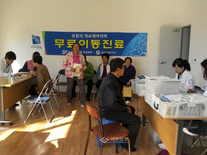 [시민일보]지난 7일 경기 포천시 보건소와 경기도의료원 포천병원이 도리돌 건강증진센터에서 지역주민들을 대상으로 내과, 치과, 한방 등의 무료 진료와 치매, 금연, 불소양치사업 등의 보건교육을 실시했다. 사진은 이날 무료진료에 참여한 지역 주민들의 모습.