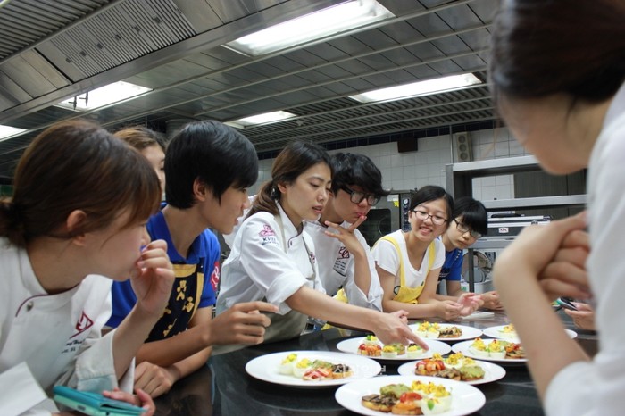 | ▲ 지난해 실시한 '인성별 톡톡멘토링' 중 '꿈을 요리하는 맛있는 멘토링'을 주제로 경희대를 방문한 학생들이 요리를 보며 토론하고 있는 모습. | ||