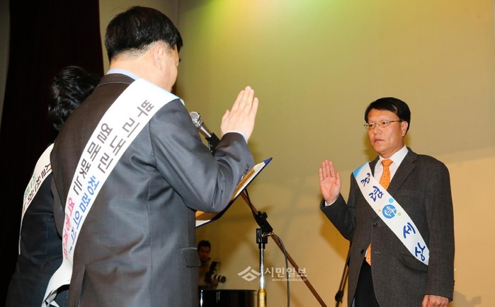 [시민일보] 인천 계양구는 지난 11일 구청 대강당에서 공무원들을 대상으로 '청렴한 공직문화 정착을 위한 계양구 공직자 청렴실천 결의 및 교육'을 실시했다. 사진은 직원 대표들이 청렴하고 정직하게 직무를 수행할 것을 선서하고 있는 모습.