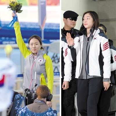 스피드스케이팅 여자 500m 경기에서 금메달을 차지한 이상화가 11일 오후(현지시각) 러시아 소치 해안클러스터 아들레르 아레나에서 경기 종료 후 열린 플라워 세리머니에서 시상대에 오르며 관중들을 향해 손인사를 하고 있다(왼쪽). 피겨 김연아가 2014 소치 동계올림픽 2연패를 달성하기 위해 12일 오전 인천국제공항을 통해 러시아 소치로 출국하고 있다. 김연아는 출국 전 기자회견에서 “두 번째 올림픽이고 (내게)마지막 대회인 만큼 만족스러운 경기를 하고 싶다”고 전했다.