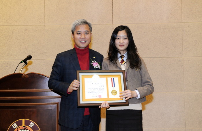 [시민일보] 경기 오산시 지역내 학교들의 졸업식이 12일부터 본격 시작됐다. 오산시는 학교별로 타의 모범이 되는 학생들을 추천받아 시장표창을 수여하고 있다. 사진은 12일 대호중학교 제9회 졸업식에 참석한 곽상욱 오산시장이 우수학생으로 추천받은 이홍주 학생에게 표창장을 수여하는 모습.