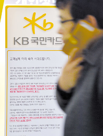 1억여건의 고객 개인정보를 유출시킨 KB국민·롯데·농협카드가 17일부터 3개월간 영업정지 제재를 받는 가운데 14일 오후 서울 종로구 KB국민은행 광화문지점 내에 설치된 KB국민카드 카드 개인정보 비상상담실에서 인근에서 직원들이 분주히 움직이고 있다.