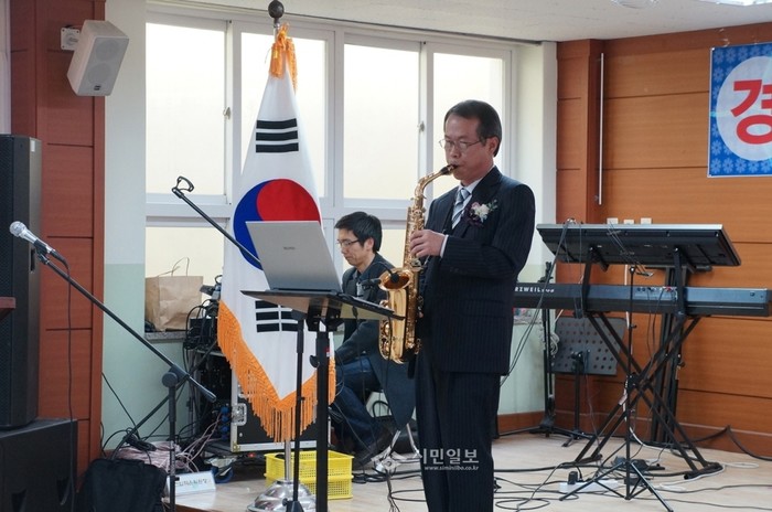 인천 조동초등학교는 지난 14일 졸업생·교직원·학부모 및 내빈들이 참석한 가운데 제24회 졸업식을 열어 정든 모교를 떠나는 졸업생들에게 힘찬 새 출발의 발걸음이 될 수 있도록 축하하는 자리를 마련했다. 사진은 이인규 조동초등학교장이 학생들을 위한 특별공연을 하는 모습.