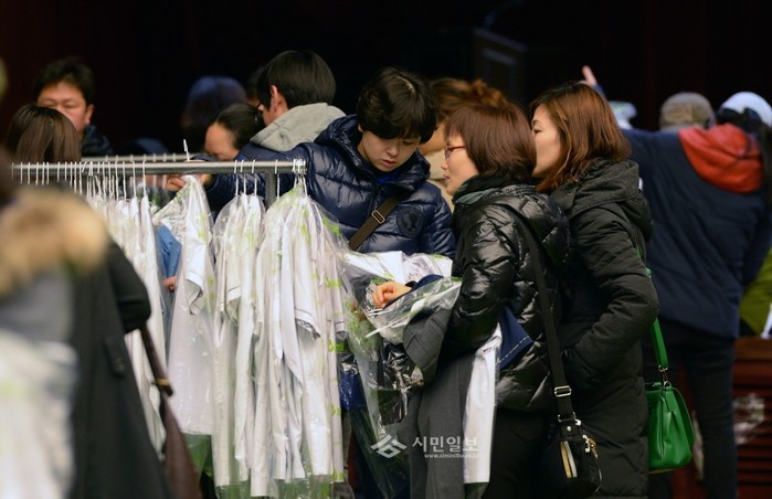 [시민일보]지난 16일 서울 동대문구가 구청에서 학부모들의 교복구입 부담을 줄이고 자원 재활용을 통해 환경을 보호하기 위해 지역내 7개 중·고등학교가 참여한 '2014 교복나눔장터'를 열어 한 점당 1000원에 교복을 판매했다. 사진은 이날 행사에 참여한 주민들이 교복을 살펴보는 모습.