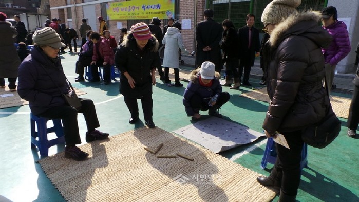 [시민일보]지난 15일 서울 구로구 구로1동 구일중학교에서 정월대보름을 맞아 주민간의 화합과 올 한 해가 잘 풀리기를 기원하며 500여명이 참여해 지신밟기, 사물놀이 등의 다양한 민속놀이 행사가 열렸다. 사진은 이날 윷놀이를 하는 주민들의 모습.
