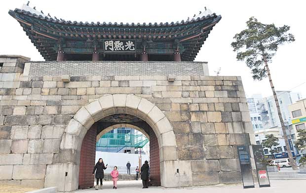 서울성곽 4소문 중 하나인 광희문이 39년만에 개방됐다. 서울 중구는 17일부터 서울성곽 4소문 중 하나인 광희문을 연중무휴 24시간 개방한다고 밝혔다. 17일 오후 서울 중구 광희문을 찾은 시민이 둘러보고 있다.