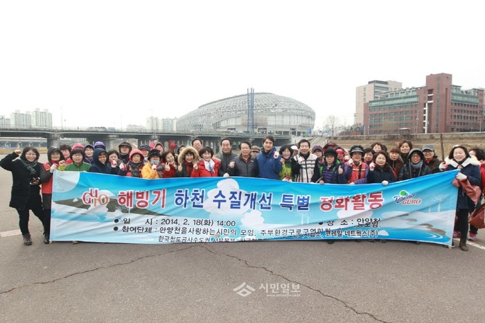 [시민일보]지난 18일 '서울 구로구와 안양천을 사랑하는 시민의 모임' 등 지역내 단체와 코레일 직원, 지역 주민 150여명이 참석해 안양천 정화활동을 실시했다. 사진은 해빙기 맞이 하천 정화활동 행사에 참여한 이성 서울 구로구청장과 행사 참가자들이 기념촬영한 모습.