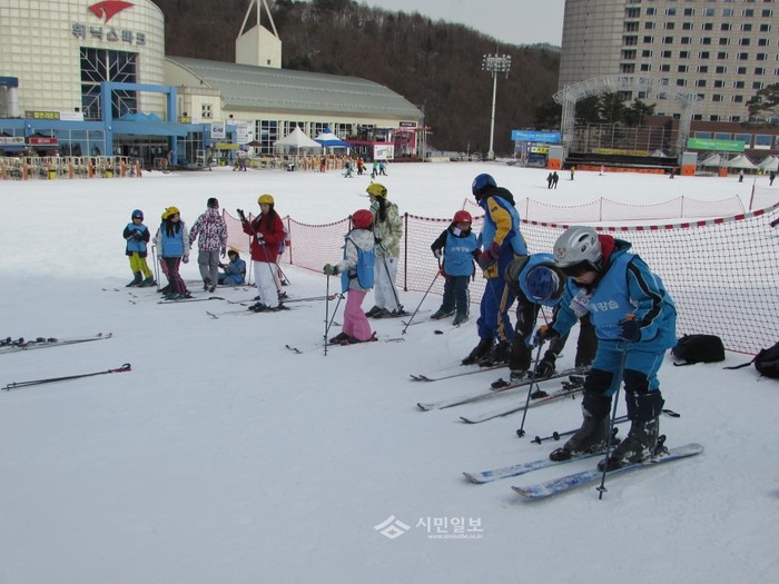 [시민일보]지난 18일 경기 오산시 오산중앙청소년문화의집에서는 지역내 취약계층 청소년들을 대상으로 학생들의 공동체의식을 함양하고 여가활동 기회를 제공하기 위한 청소년 동계 스키캠프를 진행했다. 사진은 이날 행사에 참여한 청소년들이 기초 스키 강습을 받는 모습.