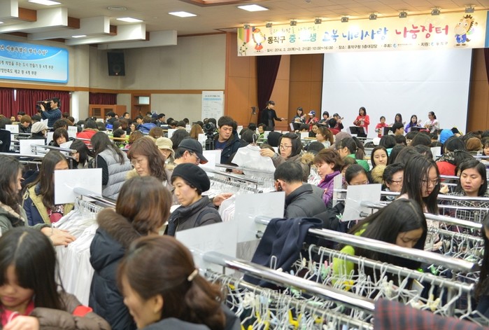 [시민일보]서울 동작구에서 20일 동작구 교복내리사랑 나눔장터가 열렸다. 이날 행사에서는 교복장터 뿐 아니라 반짝음악회가 열려 지역내 지역아동센터 아동들이 합창, 우쿨렐레, 댄스무대를 선보였다. 사진은 학부모들과 학생들이 장터에서 교복을 고르고 있는 모습.