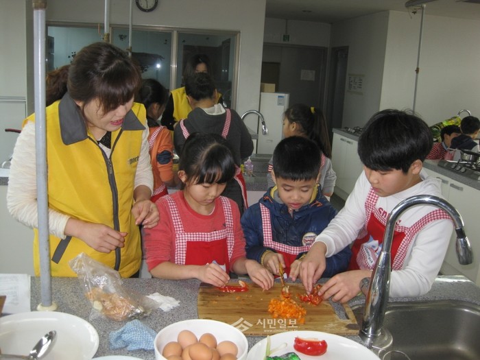 [시민일보]지난 25일 경기 남양주시가 농업기술센터에서 지역내 어린이들을 대상으로 요리, 음식나눔을 통해 어린이들의 정서 발달을 돕는 ‘어린이 푸드테라피’ 교육을 실시했다. 사진은 이날 참여한 어린이들이 강사와 함께 오므라이스를 만드는 모습.