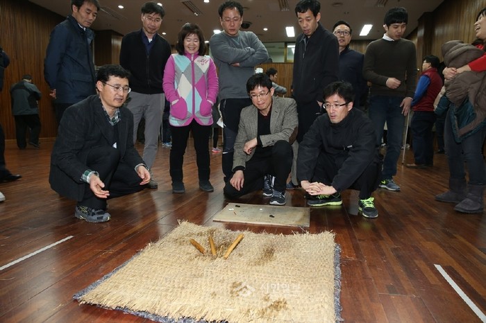 [시민일보]지난 25일 경기 안양시 동안구청이 직원들의 스트레스를 해소해 업무능률과 대민행정서비스를 향상시키기 위해 ‘동안구 공직자 어울마당’을 열고 직원 250여명이 참여해 윷놀이, 투호 등의 민속놀이 대항전을 했다. 사진은 이날 참여한 공직자들이 윷놀이 중인 모습.