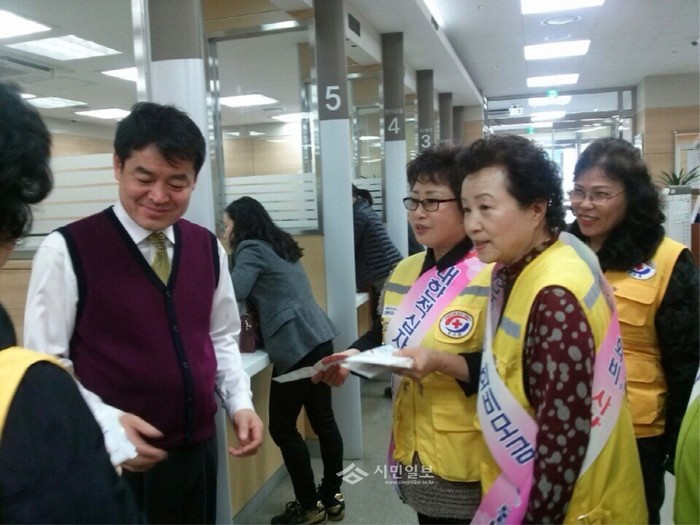 [시민일보]최근 경기 고양시 덕양구 행신2동 주민센터는 지역내 적십자봉사회 회원들과 함께 지역내 상가를 순회하며 어려운 이웃을 돕기 위한 적십자회비 납부를 권유하는 홍보활동을 펼쳤다. 사진은 이날 인근 상가에서 회비를 모금하는 봉사회 회원들의 모습.