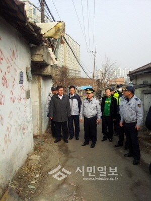 지난 27일 경기 구리경찰서가 성폭력 등의 범죄발생요인을 없애고 안전사고를 예방하기 위해 관련단체회원 70여명과 함께 지역내 공·폐가에 대한 일제 수색을 실시하고 유관기관과 취약시설 개선에 대한 논의를 실시했다. 사진은 폐가를 수색중인 모습.