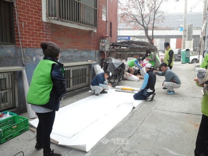 [시민일보]지난 1일 인천 부평구의 희망복지지원단과 (사)희망의 러브하우스는 부평5동의 배모씨(68)가 사는 주택을 자원봉사단 20여명과 함께 도배와 천장보수 등의 봉사활동을 펼쳤다. 사진은 사랑의 집고치기 활동에 참여한 자원봉사자들의 모습.