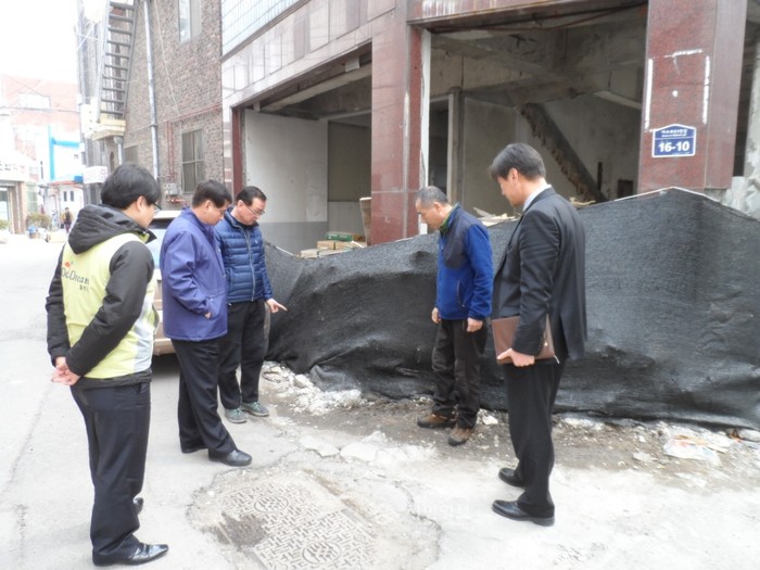 [시민일보]지난 4일 경기 동두천시 생연2동 주민센터는 통장, 새마을지도자들과 관계부터 공무원들이 함께 노후주택, 축대, 옹벽, 공사장 등 안전사고가 발생할 가능성이 높은 취약지역 28곳에 대한 집중점검을 실시하기 위험요소에 대한 안전조치를 실시했다. 사진은 이날 안전점검을 실시 중인 관계자들의 모습.