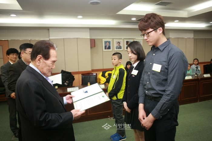 [시민일보]서울 강북구 꿈나무키움 장학재단이 지난 7일 ‘2014년도 꿈나무키움 재능장학생 장학증서 수여식’을 열고 장학생 9명에게 장학증서를 전달했다. 대상자는 신규 장학생 6명과 계속지원 장학생 3명으로, 인당 연 300만원 범위내로 학원 수강료, 대회 참가비, 관련 물품 구입비 등의 재능계발에 필요한 교육경비를 지원받게 된다.