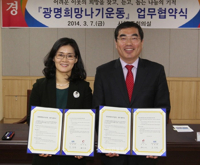 [시민일보]경기 광명시와 광명시사회복지협의회가 복지사각지대에 놓인 시민들에게 생계비, 의료비, 교육비, 난방비, 생필품 등 올해 10억원 이상의 모금을 목표로 업무협약을 맺었다.