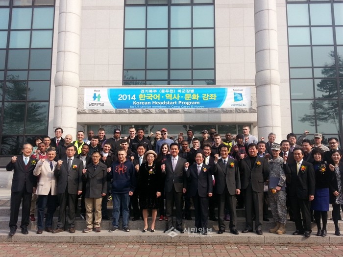 [시민일보]11일 경기도 북부청이 신한대학교에서 미군 범죄를 예방하고, 지역사회와의 갈등을 완화하기 위해 한국에 처음 배치되는 미군 장병을 대상으로 실시하는 한국어·역사·문화 강좌 입교식을 열고 3일간의 교육을 시작했다. 사진은 이날 입교식에 참여한 미군들과 관계자들의 모습.