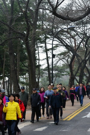 기상청이 서울 한낮 최고 기온이 17도까지 오르며 3월 들어 가장 포근한 날이 될 것이라고 예측한 16일 오전 서울 중구 남산을 찾은 시민들이 등산을 하며 봄의 정취를 만끽 하고 있다.