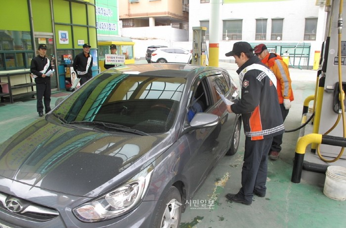최근 인천남부소방서 주안119안전센터가 주유 중 화재발생을 예방하고, 주민들의 안전문화 정착을 위해 지역 내 영남주유소 등 2곳에서 '주유 중 엔진정지 캠페인'을 실시했다. 사진은 영남주유소에 방문한 차량주에게 캠페인을 홍보하고있는 소방서 관계자들의 모습.