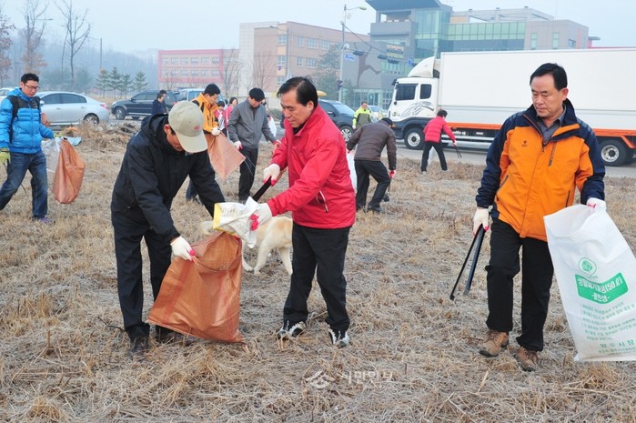 17일 경기 양주시가 공무원, 주민, 군인 등 1000여명과 함께 상가밀집지역, 역사 등 전지역에 쌓여있던 오염물 20여톤을 수거하는 등 '2014 새봄맞이 국토대청소'를 실시했다. 사진은 이날 활동 참여자들이 환경정화활동을 진행중인 모습.