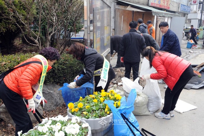 지난 17일 경기 하남시 신장1동 주민센터가 새마을협의회 등 지역내 각종 단체 회원 80여명과 함께 새봄을 맞아 공원·공터 등에 방치된 쓰레기 20여톤을 수거하고 환경정화 활동을 실시했다. 사진은 이날 참여한 주민들이 쓰레기를 수거 중인 모습.