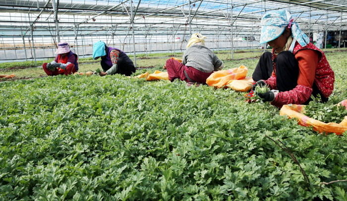 춘분(春分)을 사흘 앞둔 18일 전남 함평군 학교면 함평군농업기술센터에서 주민들이 봄기운 가득한 쑥을 캐고 있다. 쑥은 따뜻한 성질을 가지고 있어 속을 따뜻하게 하고 혈액을 맑게 해 혈액순환을 돕는 것으로 알려져 있다. /사진=함평군 제공