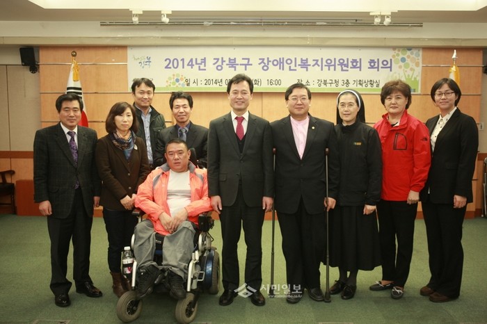 서울 강북구는 지난 18일 구청기획상황실에서 지역사회내 위기사항에 처한 저소득층을 발굴하고 동별로 실시하는 사회복지사업의 원활한 수행을 도울 제3기 강북구 복지위원 28명을 위촉했다. 사진은 이날 위촉식에 참석한 박겸수 구청장과 관계자들의 모습.