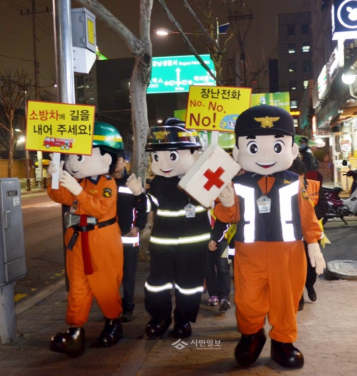 서울 강남소방서는 지난 25일 대치동 일대에서 강남 수서경찰서·의용소방대 등 유관기관과 함께 봄철 화재예방 캠페인 행사를 실시했다. 이날 행사에는 소방서 마스코트 화동이가 참여해 불조심 가두 캠페인을 진행했다. (사진제공=강남소방서)