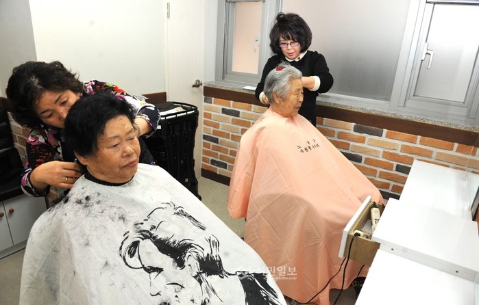 | ▲ 지난 2월2일 개장한 '공릉복지센터'에서 노인이 무료 머리손질 서비스를 받고 있다. (사진제공= 노원구청) | ||
