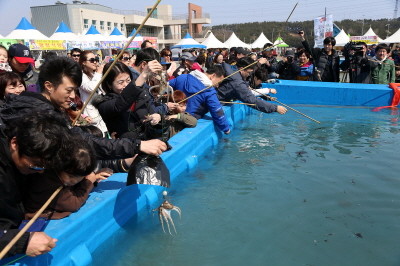 봄을 재촉하는 3월 마지막 날인 31일 충남 서천군 서면 소재 ‘서천 동백·주꾸미 축제장을 방문한 관광객들이 축제장에 마련된 주꾸미 잡기 행사에 참가 하고 있다.