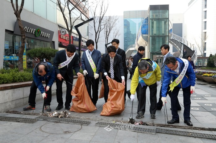 지난 2일 인천 남동구가 지역주민과 자생단체 등 유관기관 관계자 400여명이 참여해 실질적인 환경정비를 위주로 구월동 로데오 주변에서 '범 구민 클린업 데이 대청소'를 실시했다. 사진은 이날 행사에 참여한 관계자들이 쓰레기 집중 수거활동을 벌이고 있는 모습.(사진제공=남동구청)