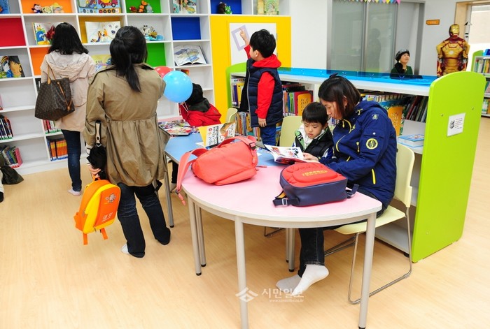 지난 3일 오후 지하2층~지상 4층 규모에 어린이·유아 열람실, 시청각실, 문화강좌실, 북카페, 종합자료실 등을 갖춘 ‘동대문구 답십리 도서관’이 문을 열었다. 사진은 지상 1층에 마련된 유아 열람실을 방문한 지역주민들이 도서관을 이용하고 있는 모습. (사진제공=동대문구청)