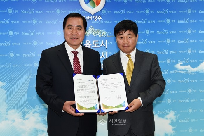 경기 양주시는 지난 4일 서정대와 공공 체육시설인 체육관을 서정대학교 캠퍼스내에 건립하고 양주시민과 서정대학교 학생들이 함께 사용한다는 내용의 '체육관 건립을 위한 양해각서'를 체결하고 지역내 체육발전을 위해 체육관 공동설립에 상호 협력하기로 했다. (사진제공=양주시청)