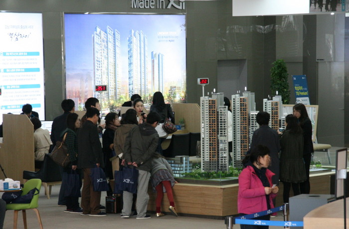 | 6일 오후 대치동 GS건설 주택문화전시관에 마련된 역삼자이 모델하우스에 방문객들이 몰려 모델하우스를 둘러 보고 있다. | ||