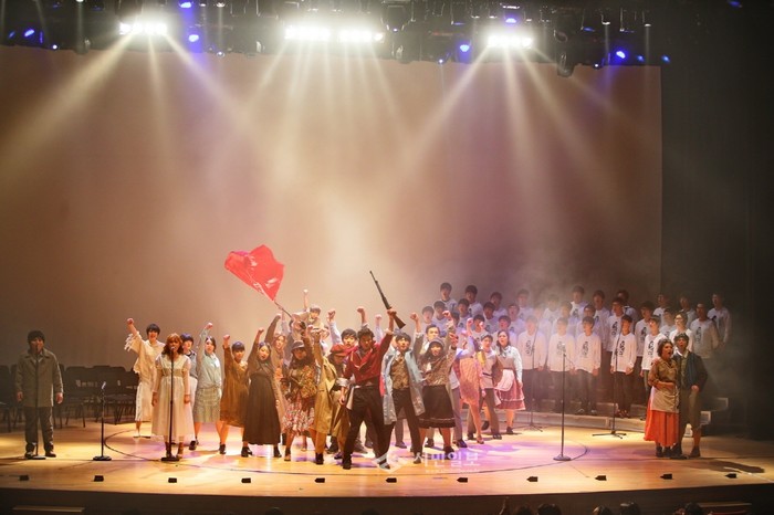 | ▲ 지난 2월 금천구 지역 고등학생 100여명은 제작사와 정식으로 라이센스 계약을 맺고 뮤지컬 '레미제라블' 영어 공연을 성공리에 마쳤다. 사진은 금나래아트홀에서 열린 뮤지컬 공연의 한 장면. | ||