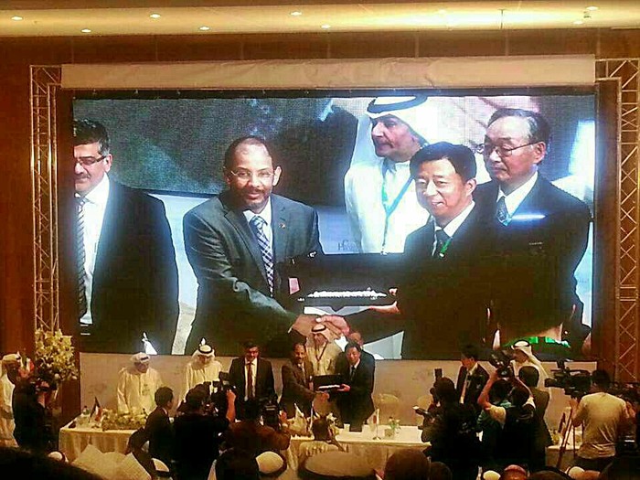 | ▲지난 13일 쿠웨이트 KNPC 본사에서 열린 CFP 계약식에서 임병용 GS건설 사장(스크린 화면 오른쪽 두 번째)과 모하메드 가지 무타이리 KNPC CEO (스크린 화면 왼쪽 두 번째) 가 계약 체결 후 악수를 나누고 있다. | ||
