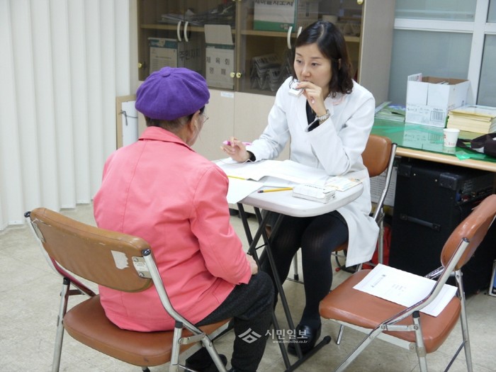 지난 11일 서울 영등포구 보건소 치매 지원센터가 '찾아가는 치매 검진 프로젝트'를 운영해 거동이 불편하거나 검진을 받기 어려운 60세 이상 노인들을 대상으로 치매 검진을 실시했다. 사진은 이날 치매 검진에 참여한 주민이 의료진과 상담 중인 모습. (사진제공=영등포구 보건소)