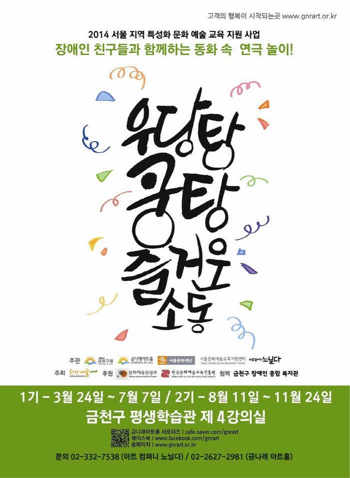 프로그램 참여신청과 자세한 내용 문의는 아트컴퍼니 노닐다(02-332-7538)로 하면 된다.