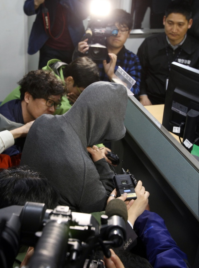 취재진에 둘러싸인 세월호 선장