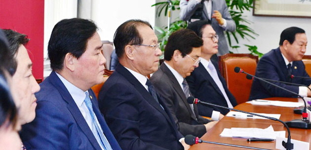 17일 오전 서울 여의도 국회 새누리당 대표실에서 열린 최고위원회의에서 황우여 대표와 최경환 원내대표, 최고위원들이 침울한 표정을 하고 있다.