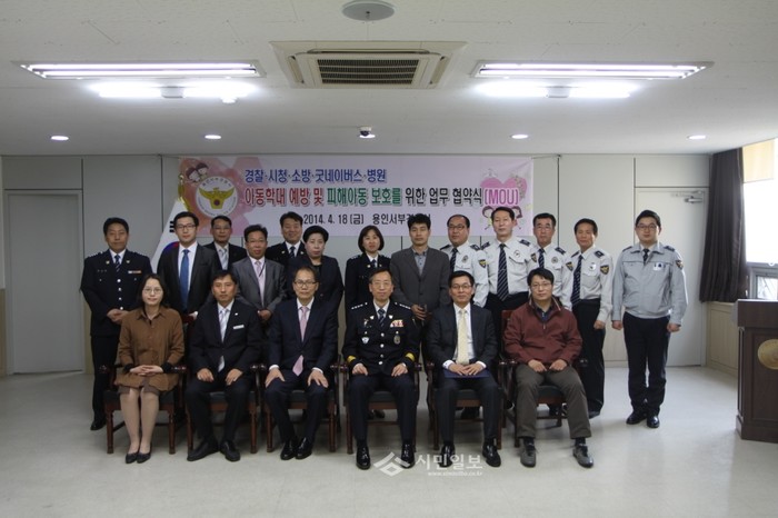경기 용인 서부경찰서에서는 지난 18일 6개 유관기관 대표들이 참석한 가운데 아동학대예방 및 피해아동 보호를 위한 업무협약식을 열었다. 용인시, 용인 아동보호전문기관, 수리우리병원, 강남병원, 용인소방서 등 유관기관간 협력을 통해 예방단계에서 사후관리까지 적극적인 개입과 지원을 하기로 했다. 사진은 기념촬영을 하는 관계자들의 모습. (사진제공=용인서부경찰서)