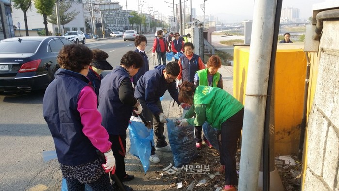 23일 오전 경기 동두천시 중앙동 주민센터가 지역주민 60여명과 함께 청소가 취약한 지구를 중심으로 동 전 지역에 걸쳐 쾌적한 주거환경을 만들기 위해 대로는 물론 이면도로와 곳곳의 골목을 대상으로 '클린데이 정화활동'을 펼쳤다. 사진은 이날 참여자들이 청소 중인 모습. (사진제공=동두천시청)