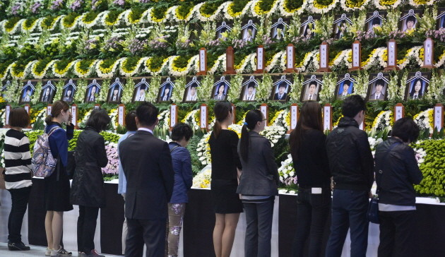 23일 오후 경기도 안산 올림픽기념관에 마련된 진도 세월호 희생자 임시합동분향소를 찾은 조문객들이 조문하고 있다.
