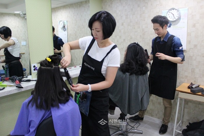 최근 서울시립남부장애인종합복지관에서는 인근 업체 및 기관의 후원을 받아 장애인의 날을 맞아 미용, 무료일일카페, 사진촬영 등의 프로그램을 실시해 심리적 휴식을 제공하는 한편, 장애인에 대한 인식을 개선하는 계기를 만들었다. 사진은 이날 열린 행사에서 미용을 받고 있는 참여자의 모습. (사진제공=서울시립남부장애인종합복지관)