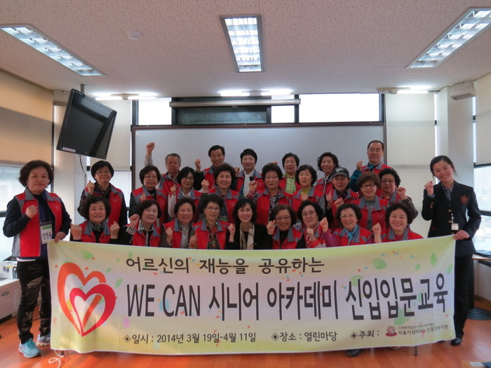이에 서울시로부터 위탁받아 이랜드 복지재단이 운영하는 서울시립 마포노인종합복지관이 노인들의 삶의 질 향상을 위해 'WE CAN(위캔) 시니어 봉사단'을 운영하면서 그 모범을 보이고 있다.